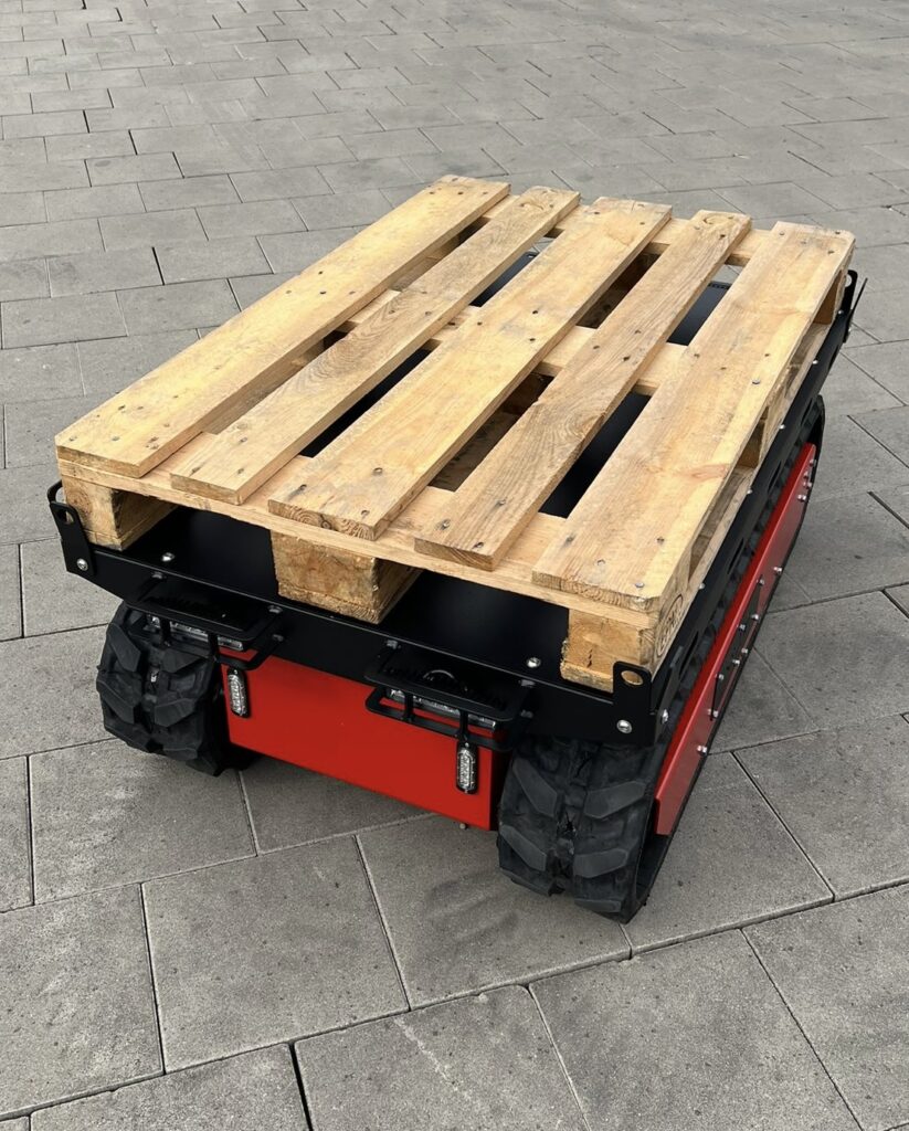 Das elektrische angetriebene Raupenfahrzeug ist die ideale Lösung für herausfordernde Einsatzgebiete mit engen, unebenen Wegen und schwierigem Terrain. Dadurch ist leiser und emissionsfreier Betrieb auch in Gebäuden und auf Baustellen mit Lärmschutzauflagen jederzeit möglich. Die Akkulaufzeit beträgt ca.8 Stunden, welche durch einen zusätzlichen Akku verdoppelt werden kann.